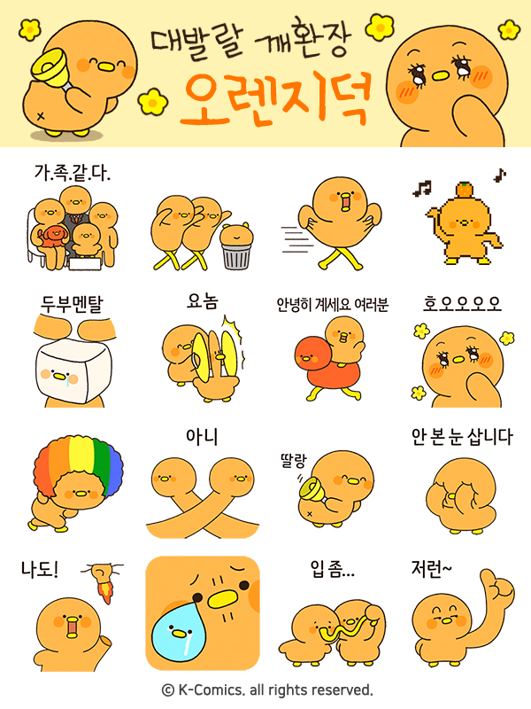 | [카카오톡 이모티콘] '대발랄 깨환장 오렌지덕 2' 카톡 이모티콘 출시! (0) | 2022.02.09 |