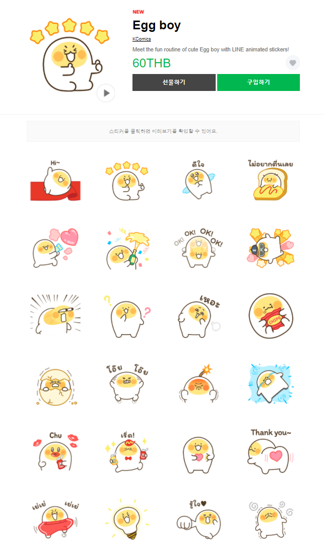 * 태국 LINE 스토어에서 ‘Egg boy’ 혹은 ‘Kcomics’를 검색해주세요!