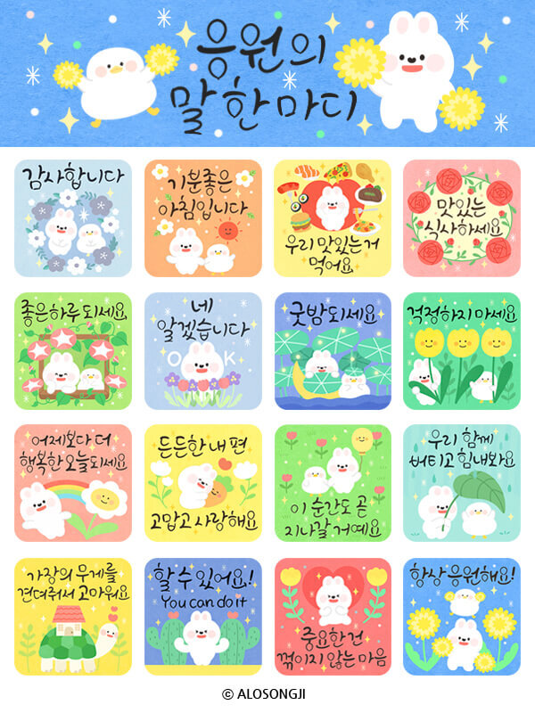 * 카카오톡 이모티콘 스토어에서 '응원의 말 한 마디' 혹은 '알로쏭지'를 검색해주세요!